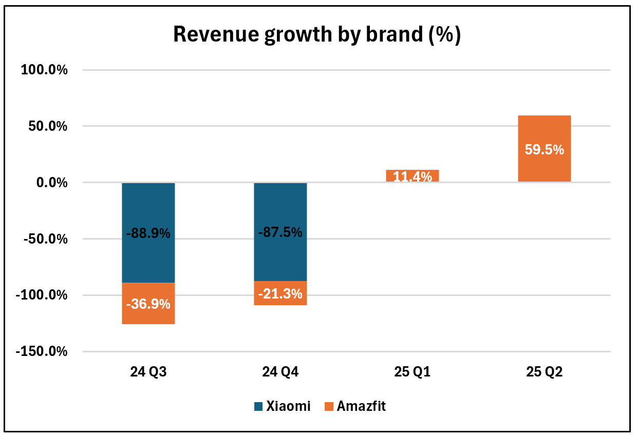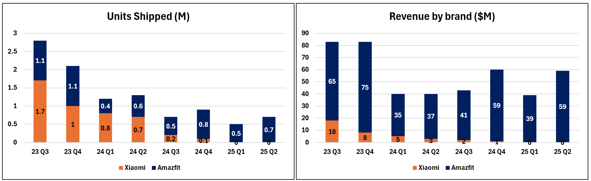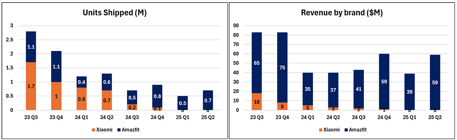 รายได้ และยอดขายของ Xiaomi ค่อยๆลดลงเรื่อยๆจนเหลือ $0 : 0 Units ใน Q1 2025 ที่ผ่านมา ดังนั้นหลังจากนี้เราจะไม่ต้องกังวลยอดขายที่ลดลงจาก Xiaomi แล้ว และสามารถ Focus ที่ Amazfit brand อย่างเดียวพอ