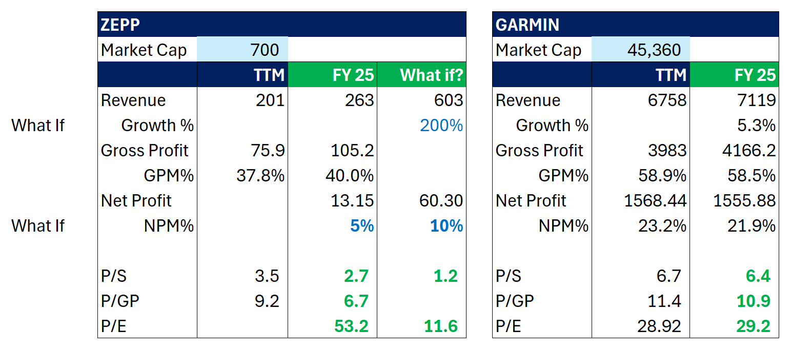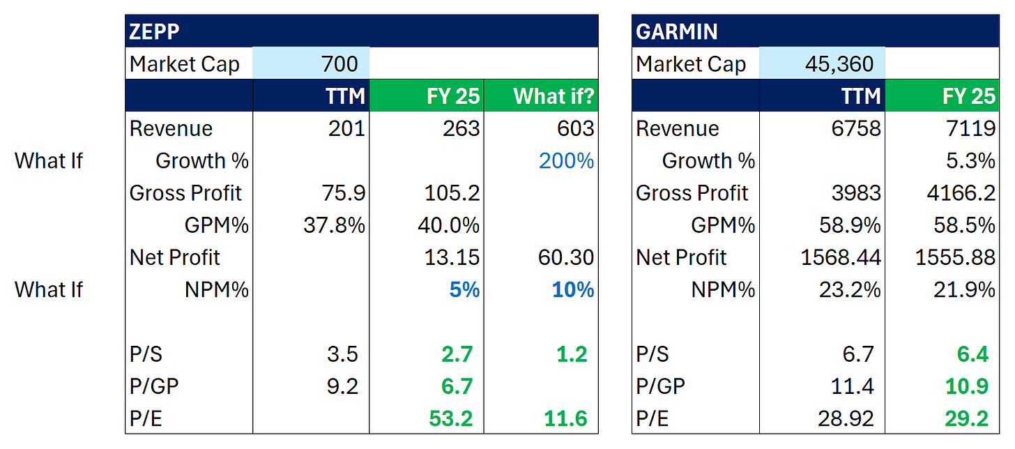 รายได้แบบ TTM ล่าสุดของ Amazfit ยังอยู่แค่ 200 ล้านเท่านั้น เมื่อเทียบกับ Garmin มีรายได้สูงถึง 6,758 ล้าน เรียกได้ว่าคนละระดับกันเลยครับ มันคงเทียบกันตอนนี้ตรงๆไม่ได้ แต่ภาพนี้ทำให้ผมเอ้ะขึ้นมาว่า ถ้า Amazfit ทำแบรนด์ได้ดีขึ้น ให้เป็นที่ยอมรับขึ้น มันมีตลาดรองรับอีกมหาศาลเลยแหะ ขอแค่นิดเดียวจาก Garmin รายได้ก็เพิ่มได้เป็นเด้งๆแล้ว
