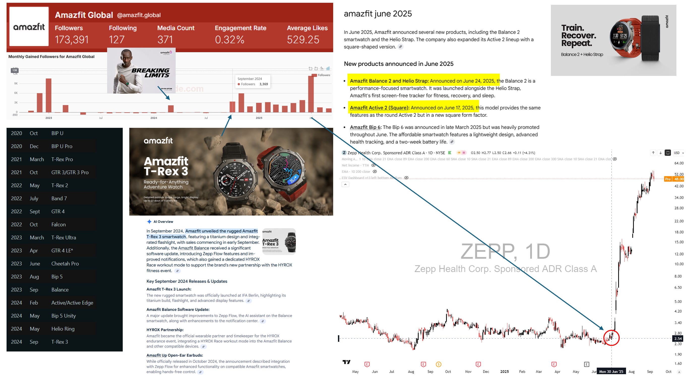 ถ้าเราติดตามยอด Follower ใน Instagram ของ Amazfit Global เราสามารถรู้ได้เลยว่า Product นี้มันจะปังจริงๆ จะเห็นว่า Amazfit Helio Strap เปิดตัวในเดือน June และถ้าเราดูยอดผู้ติดตามในเดือน June จะเห็นว่ายอดโตขึ้นแบบน่าตกใจถึงหลักหมื่น จากที่แต่เดิมโตเดือนละพันเท่านั้น ถ้าเราเห็นยอดตรงนี้และวิเคราะห์ได้ก่อนว่า